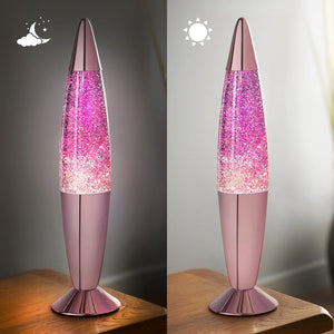 - RETRO ROOM FEATURE – Be transported back in time as you add some instant retro nostalgia to any room in your house with this purple glitter lamp, which is well suited to a bedroom, living space or office area.