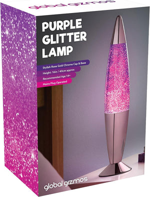 - PURPLE CHROME LAVA LAMP – This 16-inch purple glitter lava lamp with a purple chrome finish is a wonderful decorative light to add to your home, providing a clear focal point and mesmerising glow in any room it is placed in.