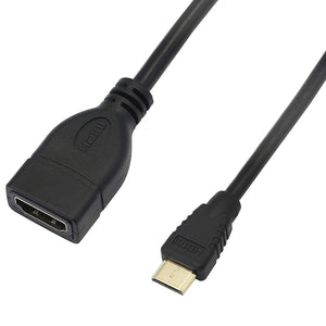17cm Gold Plated Mini HDMI Male to HDMI 19 Pin Female Cable (Black)