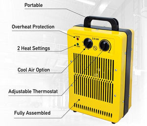 This industrial fan heater, at up to 2800 Watts of power, will easily heat up an entire room, whether in the home or the office. With its adjustable thermostatic control, it provides the option of 2 different settings for heating at 1500W and 2800W respectively, making it suitable for all kinds of winter temperatures. The fan heater is portable and easy to transport to different places, coming with a convenient carry handle right on the top of the heater that folds on top of the unit for easier storage. The durable metal casing of the fan means it can withstand plenty of movement and transport. Afterwards, it can be placed reasonably freely in a room thanks to its 1.3 metre cable length. This fan heater comes fully assembled, allowing you to instantly plug it in and use it straight out of the box. If that’s not convenient enough, the heater is also energy efficient, and makes little noise (45dB) compared to other fans of a similar strength. Its dual overheat protection with an auto shutdown function also ensures that the fan will not be damaged by overheating, making it last over long durations of use. Not only can the fan heat up rooms, it can also cool them down thanks to its 25W cool air fan setting. You will be able to use the fan to heat up your surroundings in the winter, and then again in the summer to cool your area down in the heat, making this fan very useful at all times of year.
