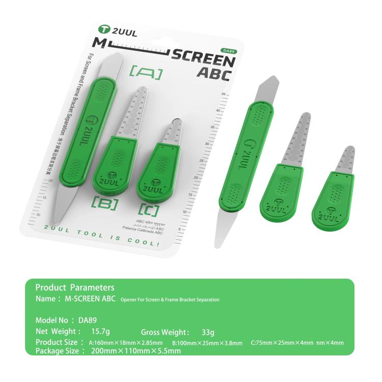 The 2UUL DA98 M-Screen ABC Opener is an essential tool for separating screens and frame brackets during mobile device repairs. Made with high-quality materials, it ensures durability and precision, making it perfect for both professional technicians and DIY enthusiasts. Whether you're repairing screens on smartphones or other devices, this tool simplifies the process with its ergonomic design and reliable performance.