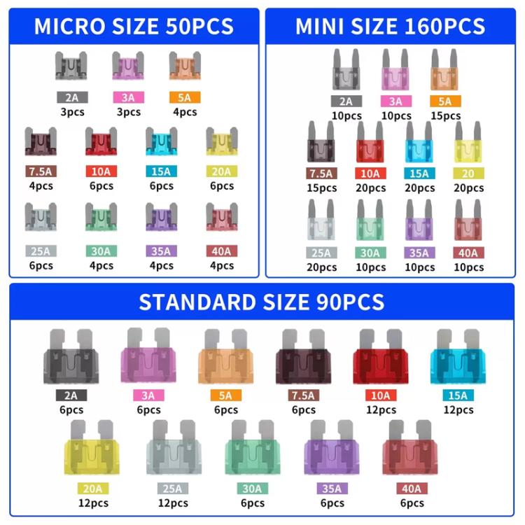 - Comprehensive assortment of 300 zinc sheet blade fuses