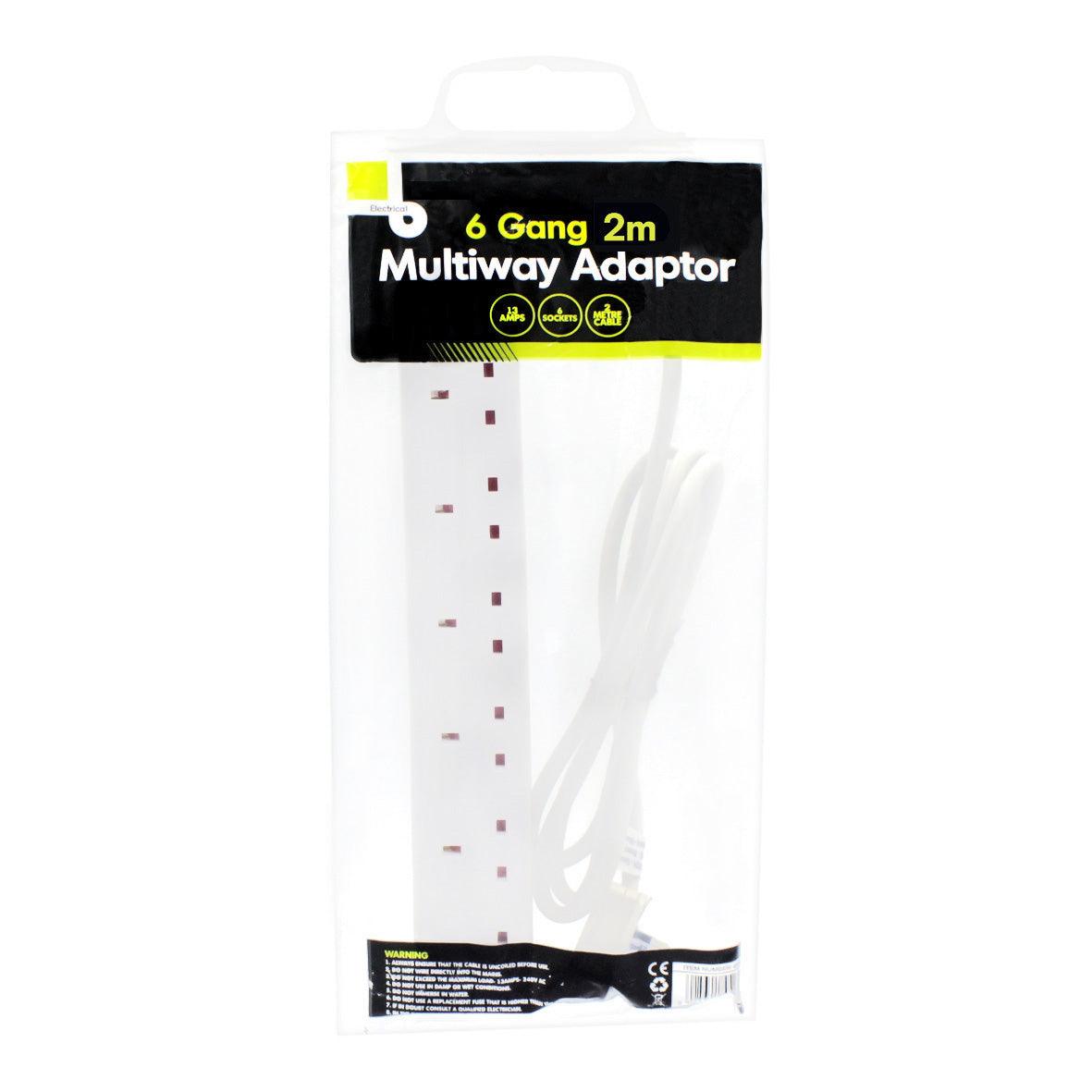 6 Way 2M Extension Lead - 13A / 13 Amps Electrical Plug Socket UK Mains Power