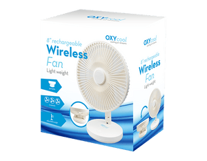 This 8” Wireless Fan is perfect for keeping cool in the home or office during the warm summer months. The fan is wirelessly operated by a long-lasting rechargeable battery which is charged with the included USB cable.