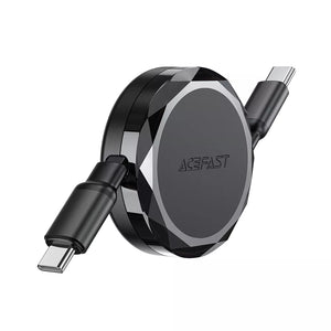 Acefast 0.8m (60W) Power Delivery - USB-C to USB-C Retractable Zinc Alloy Cable Black