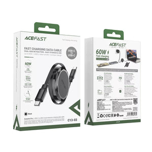 The Acefast 0.8m (60W) Power Delivery USB-C to USB-C Retractable Zinc Alloy Cable is a high-performance, durable, and safe charging solution. Its combination of robust construction, superior charging capabilities, and innovative retractable design makes it an essential accessory for keeping your devices powered up and ready to go. Stay connected and charged with the reliable Acefast cable.