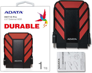 Adata Pro Durable 1TB USB 3.1 Portable External Hard Drive IP68 Waterproof, Shockproof, Dustproof for PS5, PC, PS4, Xbox, Red