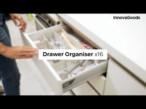 This adjustable drawer organiser adapts perfectly to different dimensions and spaces, according to your needs. It includes instructions for use in order to place it correctly in various positions. The16 units included can be cut and joined together perpendicularly to fully fit the desired space. They can also be positioned vertically.