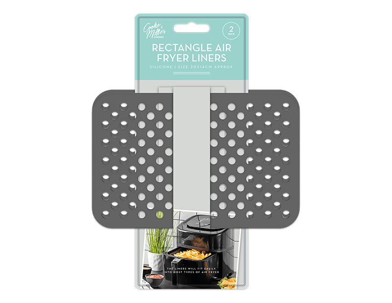 These rectangle silicone air fryer liners measure L20 x W14cm approx and will easily fit into most types of rectangle air fryer.