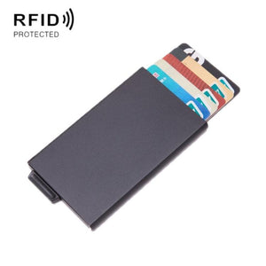 Aluminum Alloy Credit Card Wallet RFID Anti-Theft Multi-Function Automatic Eject Card Box (Black)