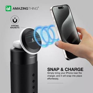 Charging your iPhone is now effortless. With our Snap & Charge technology, simply bring your device near the charger, and it will snap into place securely, ensuring a hassle-free charging experience every time.