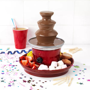 Perfect for parties, birthdays, baby showers and other special occasions, this fabulous American Original chocolate fountain is sure to provide a fun way to celebrate. With a three tier system made from stainless steel and heat resistant plastic, the chocolate fountain is great for dipping fruit and marshmallows. With a generous 500 ml capacity and 90 W power, the fountain has a removable tower and auger so you can easily clean once used. Boasting a sleek metallic red body, this fountain is a must-have.