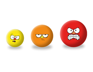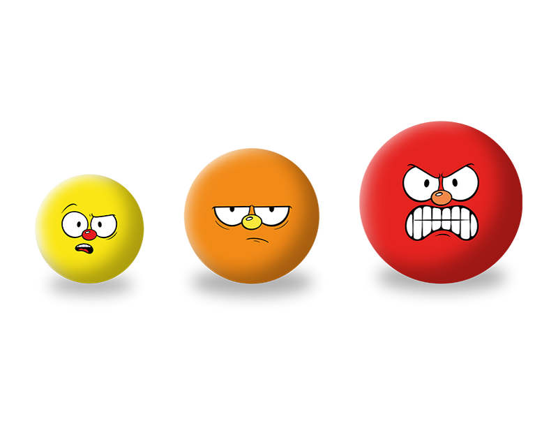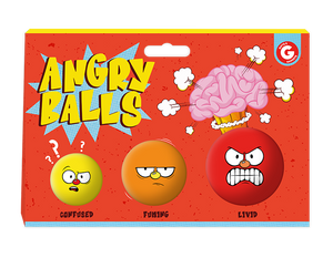 Each pack comes with three stress balls, crafted from durable foam and in small, medium and large, each with a funny face printed on the front with different stress levels - confused, fuming and livid.