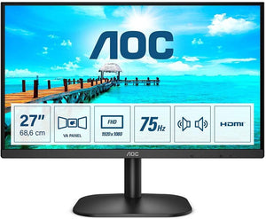 AOC 27 inch FHD Widescreen Monitor, 75Hz, 4ms, VA Frameless Design, LowBlue Mode, Flicker free, Speakers (1920 x 1080 @ 75Hz, HDMI 1.4 x 1, VGA)