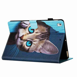 Apple iPad 10.2 2020 / 2019 Painted Pattern Stitching Smart Leather Tablet Case Cover (Blue Cat)