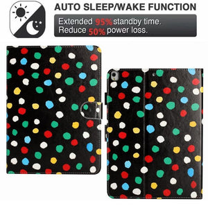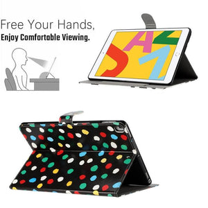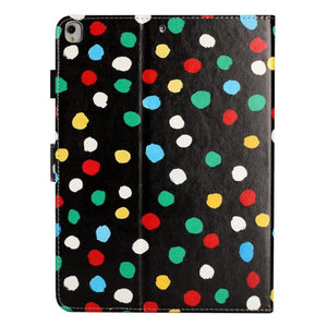Apple iPad 10.2 2021 / 2020 / 10.5 2019 Dot Pattern Leather Smart Tablet Case Cover (Black Colorful)