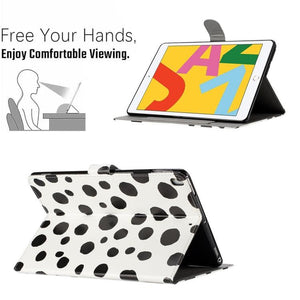 Apple iPad 10.2 2021 / 2020 / 10.5 2019 Dot Pattern Leather Smart Tablet Case Cover (White Black)