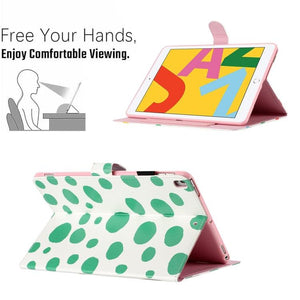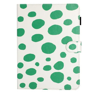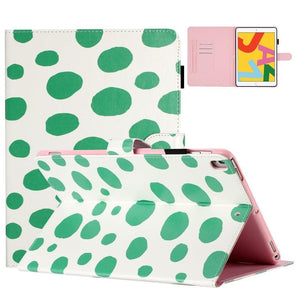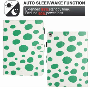 Apple iPad 10.2 2021 / 2020 / 10.5 2019 Dot Pattern Leather Smart Tablet Case Cover (White Green Dot)