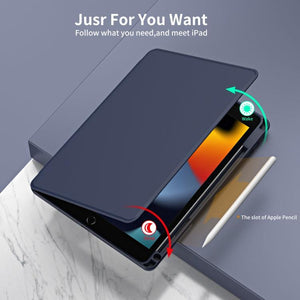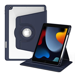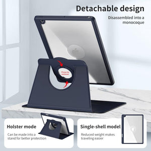 Apple iPad 10.2 2021 2020 2019 Acrylic 360 Rotation Detachable Leather Tablet Case Cover (Dark Blue)