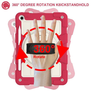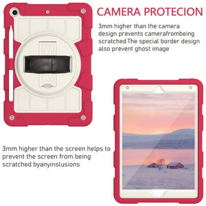 Apple iPad 10.2 2021 / 2020 / 2019 Silicone Hybrid PC Shockproof Tablet Case Cover with Shoulder Strap (Feifan Magenta)
