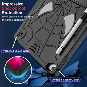 Apple iPad 10.2 2021 / 2020 / 2019 Spider Texture Silicone Hybrid PC Tablet Case Cover with Shoulder Strap (Black)