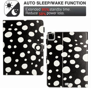 Apple iPad 10th Gen 10.9 2022 Dot Pattern Leather Smart Tablet Case Cover (Black White)