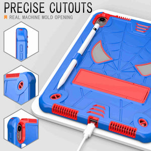 Apple iPad 10th Gen 10.9 2022 Spider Texture Silicone Hybrid PC Tablet Case Cover with Shoulder Strap (Blue + Red)