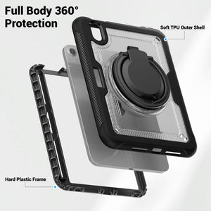 Apple iPad mini 2024 / mini 6 Honeycomb Hybrid Tablet Case Cover with Handle Holder & Strap (Transparent)