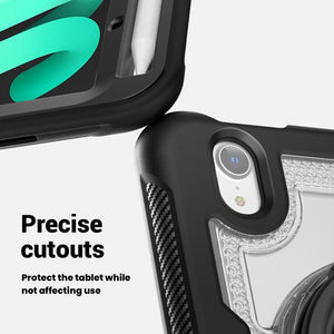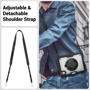 Equipped with a built-in handle holder and adjustable shoulder strap, the case ensures effortless portability and hands-free convenience, making it ideal for students, professionals, and travelers. The transparent back design showcases the sleek aesthetics of your iPad while offering reliable protection.