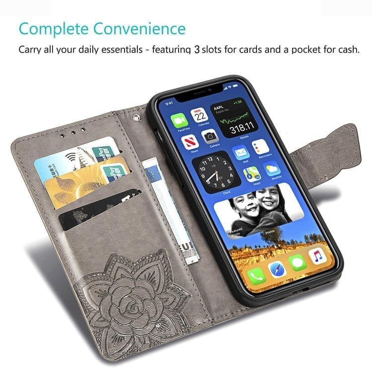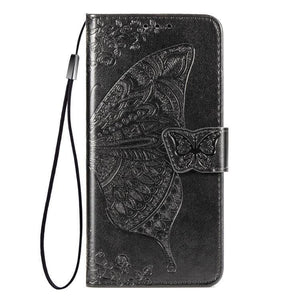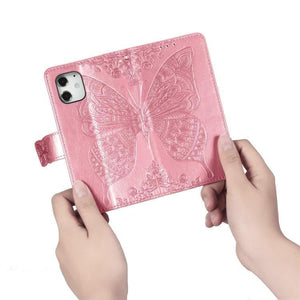 Apple iPhone 12 / 12 Pro 6.1 inch Butterfly Love Flower Embossed Horizontal Flip Leather Case Cover with Bracket / Card Slot / Wallet / Lanyard (Pink)