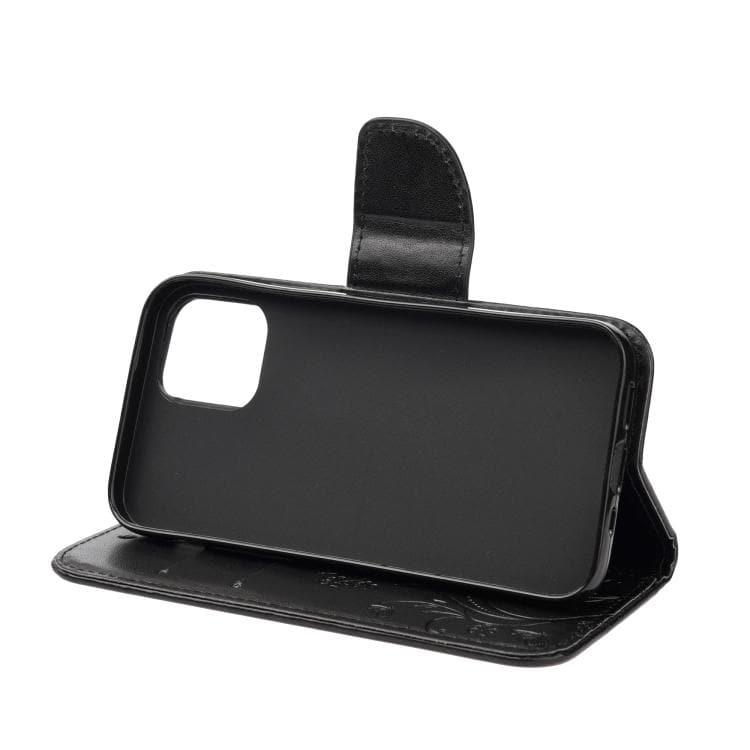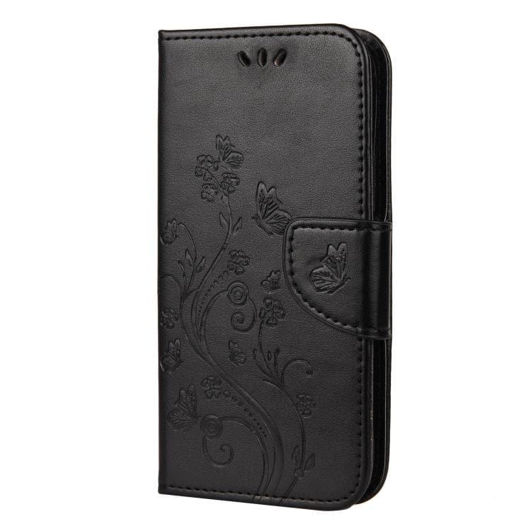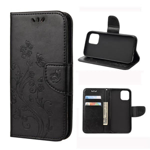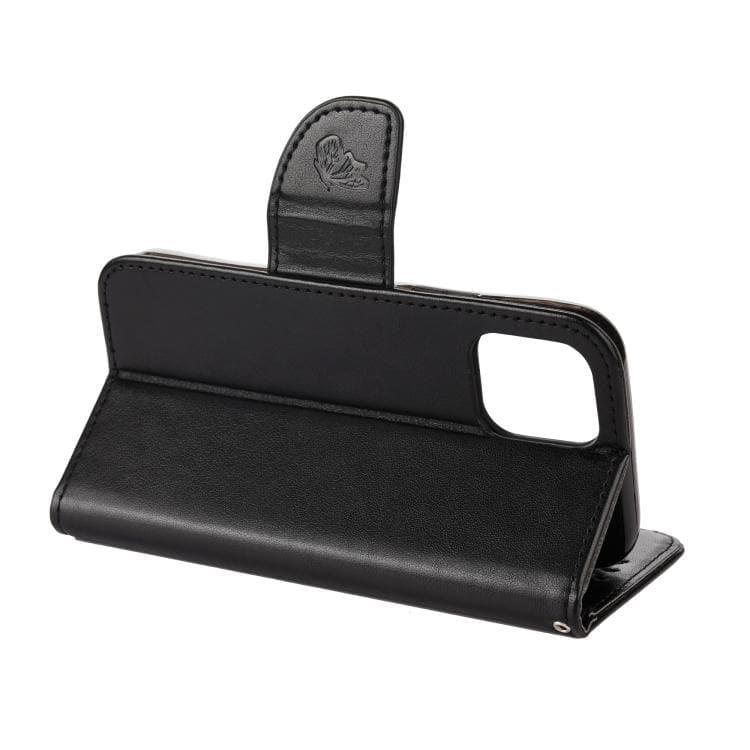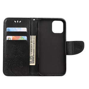 Apple iPhone 12 / 12 Pro Butterfly Flower Flip Leather Case Cover with Holder & Card Slots & Wallet (Black)