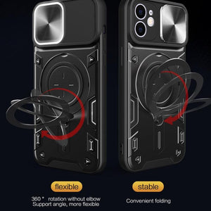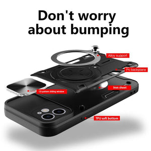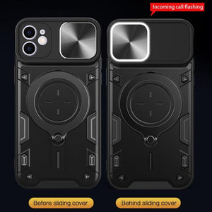 Apple iPhone 12 & 12 Pro CD Texture Sliding Camshield Magnetic Holder Phone Case Cover (Black)