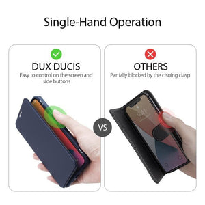 Apple iPhone 12 / 12 Pro DUX DUCIS Skin X Series PU + TPU Horizontal Flip Leather Case Cover with Holder & Card Slots(Blue)