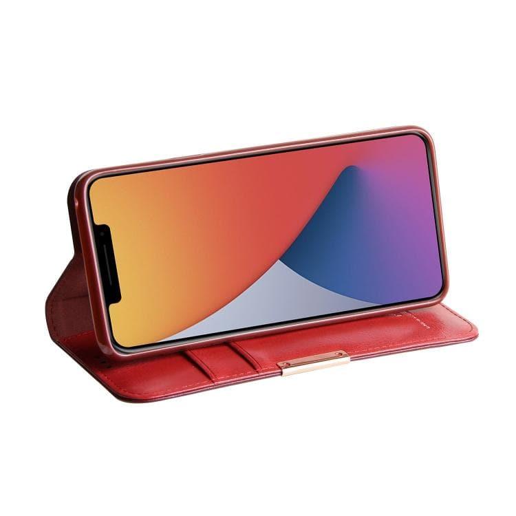 Apple iPhone 12 / 12 Pro DZGOGO ROYALE II Series Magnetic Horizontal Flip Leather Case Cover with Card Slots & Holder (Red)