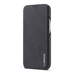 Apple iPhone 12 & 12 Pro LC.IMEEKE Hon Ancient Series Horizontal Flip Leather Case Cover with Holder & Card Slot (Black)