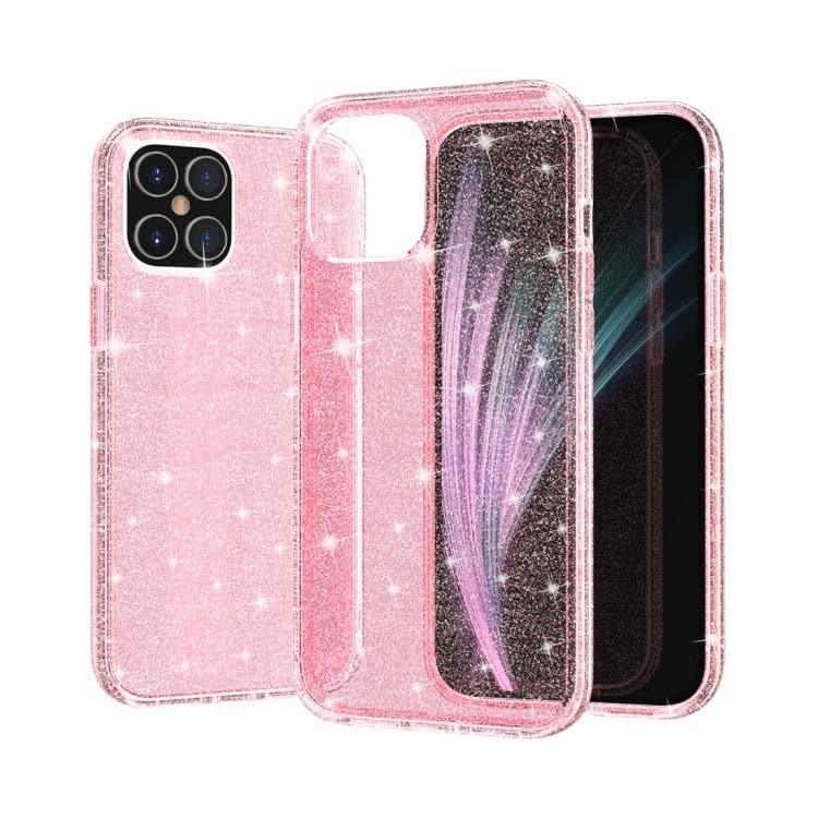 Apple iPhone 12 / 12 Pro Shockproof Terminator Style Glitter Powder Protective Case Cover (Pink)