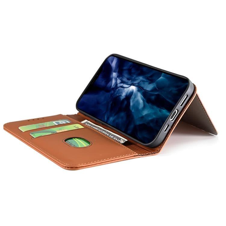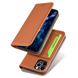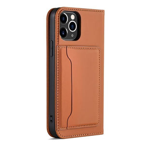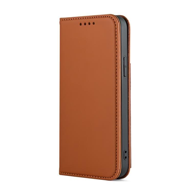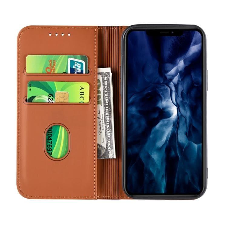 Apple iPhone 12 / 12 Pro Strong Magnetic Shockproof Horizontal Flip Liquid Feel Leather Case with Holder & Card Slots & Wallet (Brown)