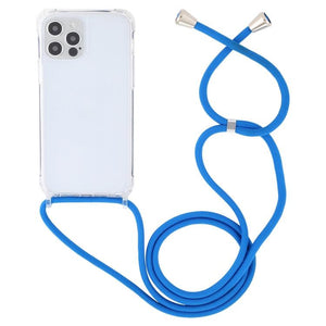 Apple iPhone 12 & 12 Pro Transparent Acrylic Airbag Shockproof Phone Protective Case Cover with Lanyard (Blue)