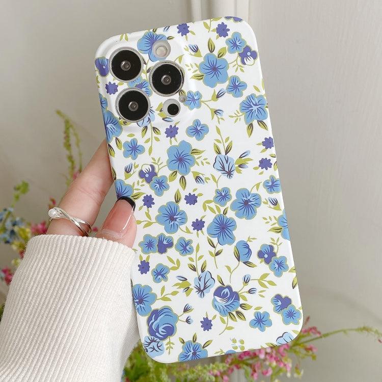 Apple iPhone 12 & 12 Pro Water Sticker Flower Pattern PC Phone Case Cover (White Backgroud Blue Flower)