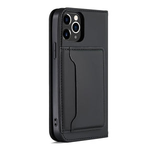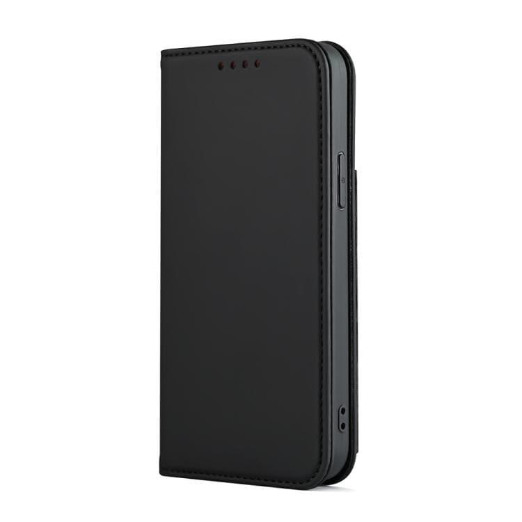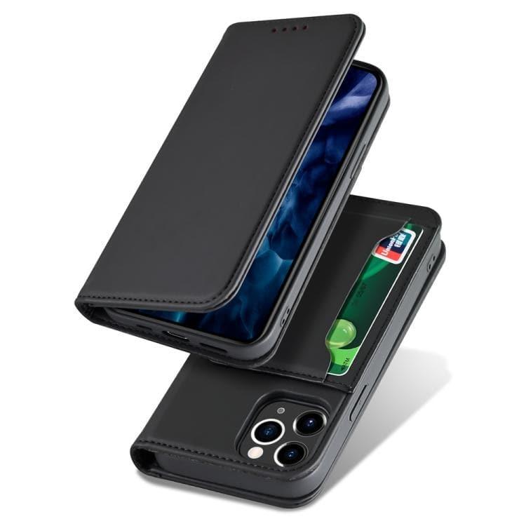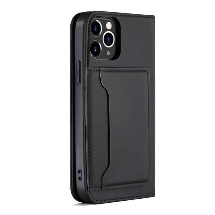 Apple iPhone 12 Pro Max Strong Magnetic Shockproof Horizontal Flip Liquid Feel Leather Case with Holder & Card Slots & Wallet (Black)