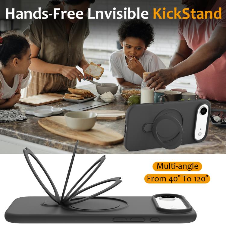 Apple iPhone Air Liquid Silicone MagSafe Magnetic Phone Case with Ring Holder - Carbon Black