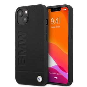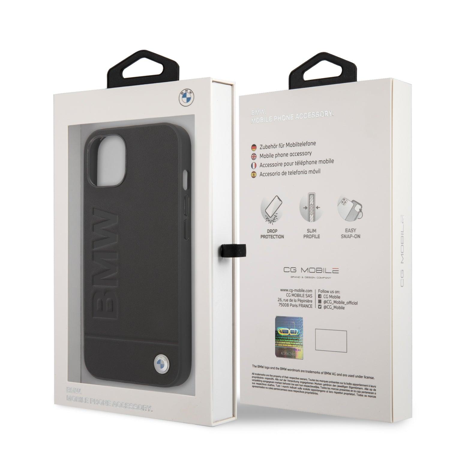 Apple iPhone 13 - Leather Case Black Hot Stamp And Metal Logo - BMW