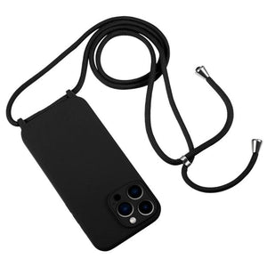 Apple iPhone 13 Pro Max Crossbody Lanyard Liquid Silicone Case Cover (Black)