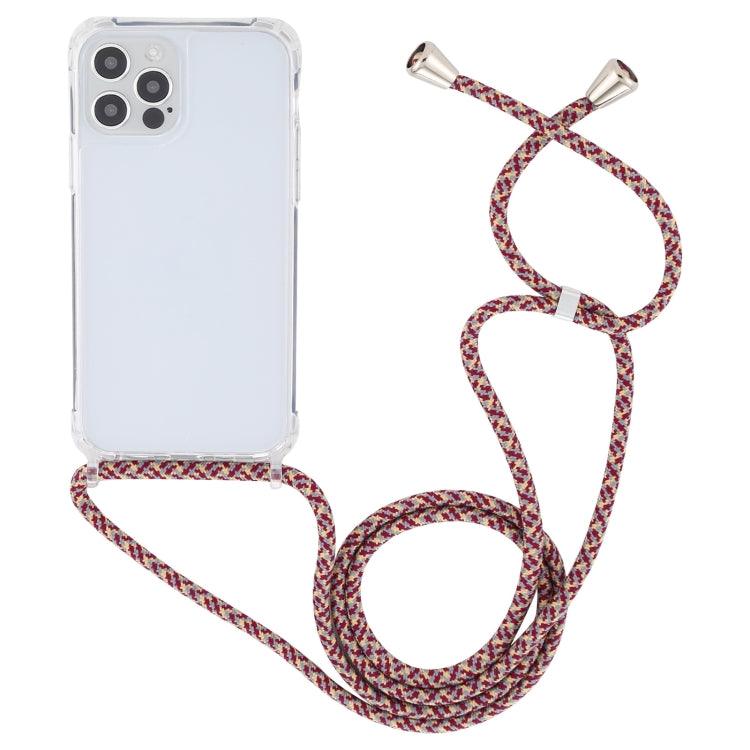 Apple iPhone 13 Pro Transparent Acrylic Airbag Shockproof Phone Protective Case Cover with Lanyard (Red Apricot Grey Fine Lines)