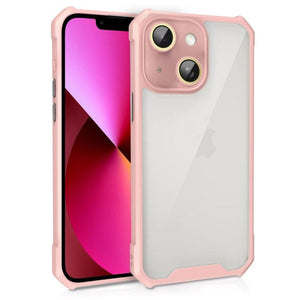 Apple iPhone 13 Shockproof Acrylic Phone Case Cover with Lens Glass Film (Pink)