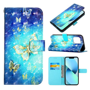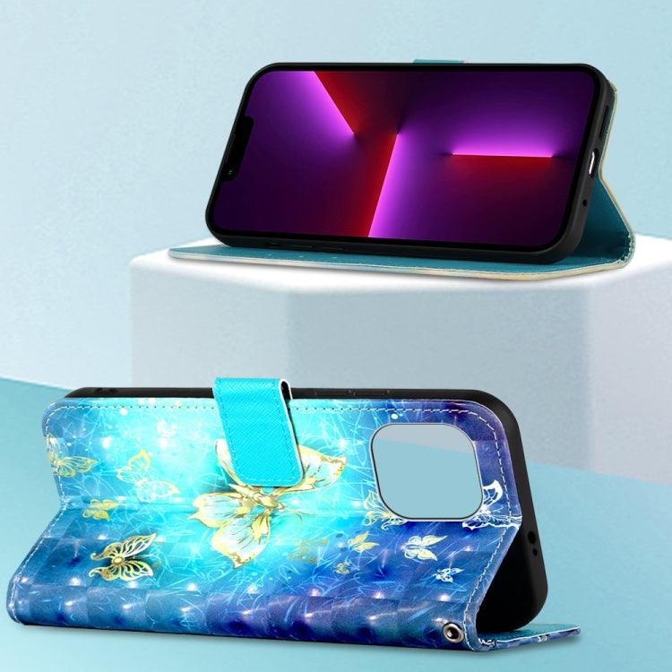 Apple iPhone 14 3D Painting Horizontal Flip Leather Phone Case Cover (Golden Butterfly)