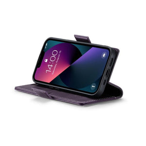 Apple iPhone 14 Case CoverMe 023 Butterfly Buckle Litchi Texture RFID Anti-theft Leather Phone Case Cover (Pearly Purple)