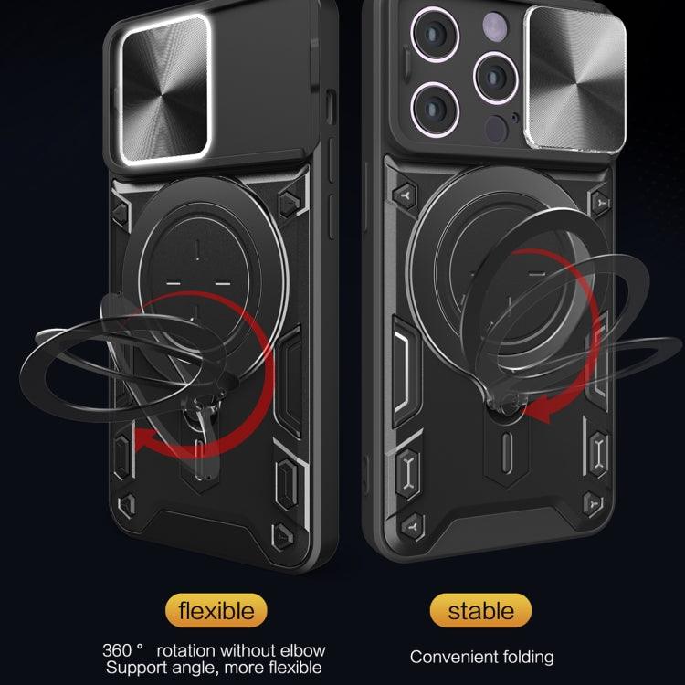Apple iPhone 14 CD Texture Sliding Camshield Magnetic Holder Phone Case Cover (Pink)