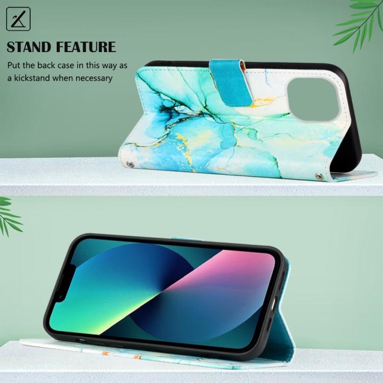 Apple iPhone 14 Marble Pattern Flip Leather Phone Case Cover (Green LS003)