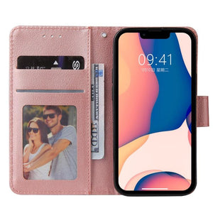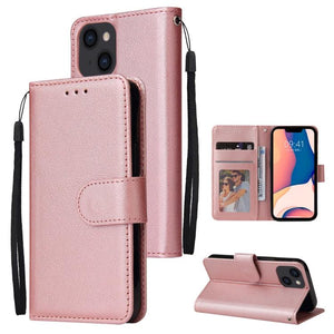 Apple iPhone 14 Multifunctional Horizontal Flip Leather Case Cover with Three Card Slot (Rose Gold)